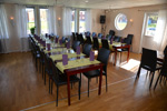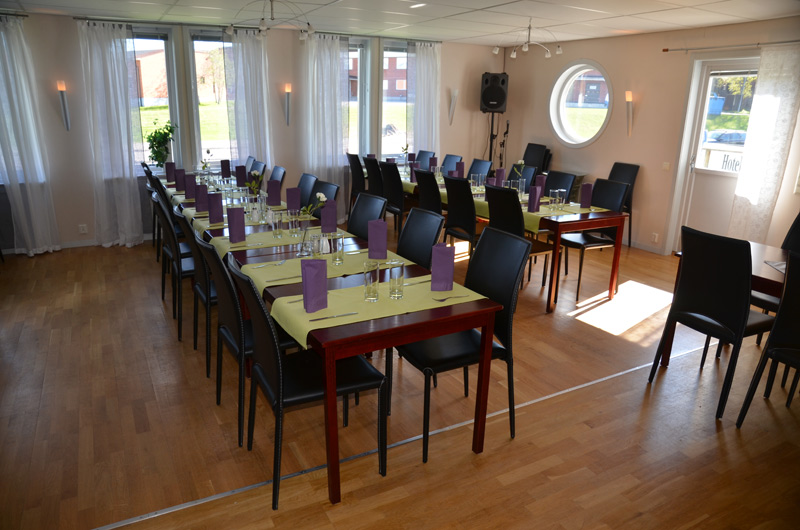 I vår ljusa och trevliga matsal serveras en härlig frukostbuffé samt lunch och middag till förbeställda grupper