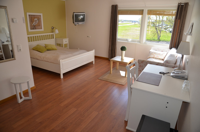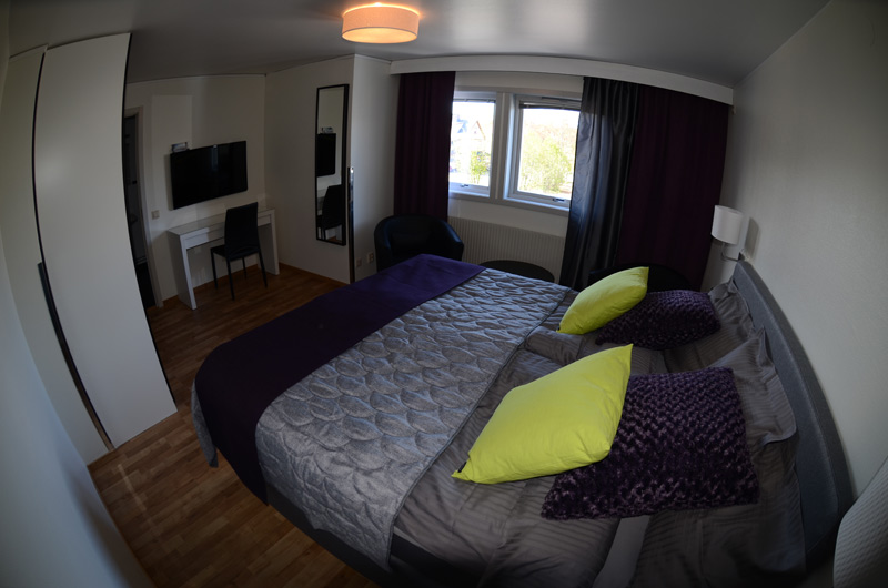 Dubbelrum/superior. Modernt inredda dubbelrum med continentalsäng, 180cm. 42" TV.
