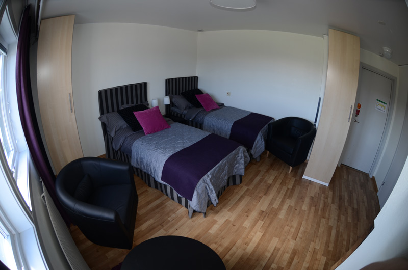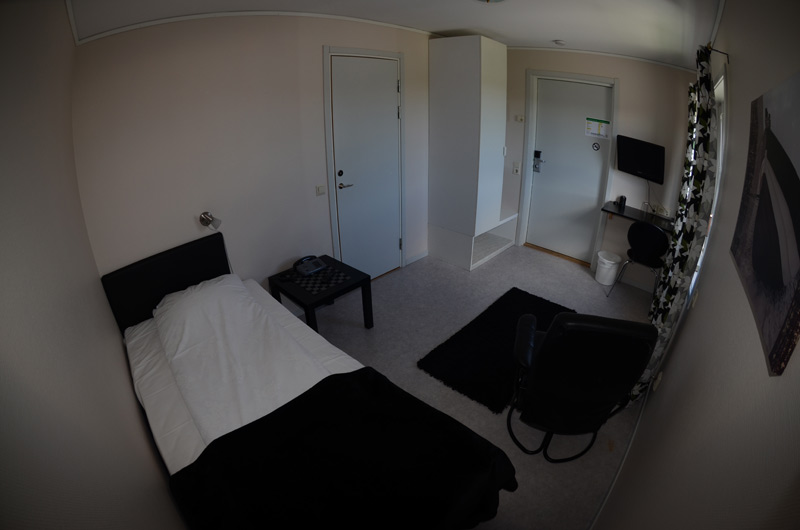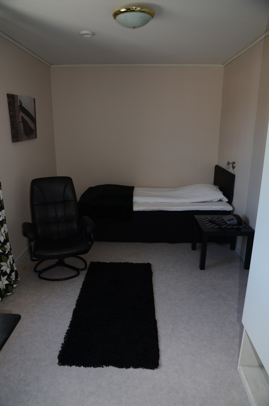 Enkelrum, trivsamt inredda med sköna sängar, 105cm.